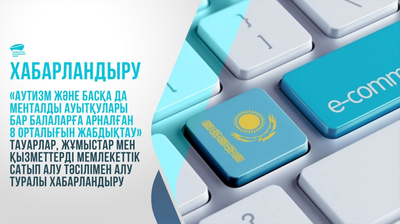 «Аутизм және басқа да менталды ауытқулары бар балаларға арналған 8 орталығын жабдықтау » тауарлар, жұмыстар мен қызметтерді мемлекеттік сатып алу тәсілімен алу туралы хабарландыру