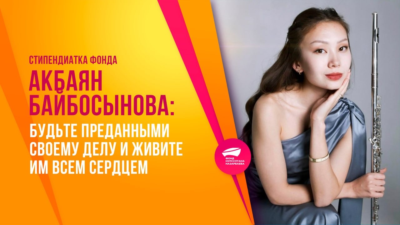 Акбаян Байбосынова родом из Алматы, человек творчества и профессиональная флейтистка. Она выступает на концертах сольно и в составе оркестра, а также занимается преподаванием по своей специальности, совмещая исполнительскую и педагогическую деятельность.