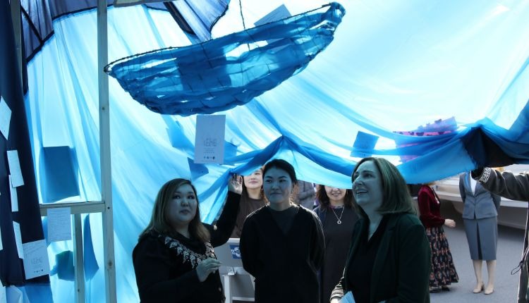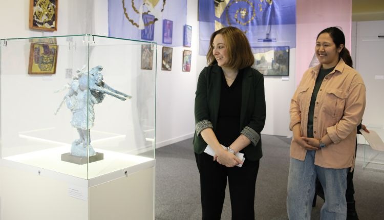 В ходе визита Посол ознакомилась о ключевых этапах становления независимости Казахстана и развитии молодого государства. Особый интерес у неё вызвали художественные работы молодых художниц Асель Тлеулен, Назиры Садуакас, Аяжан Асыми и Марии Алибай, представленные на выставке «Кеме». Авторы лично провели для высокого гостя экскурсию.